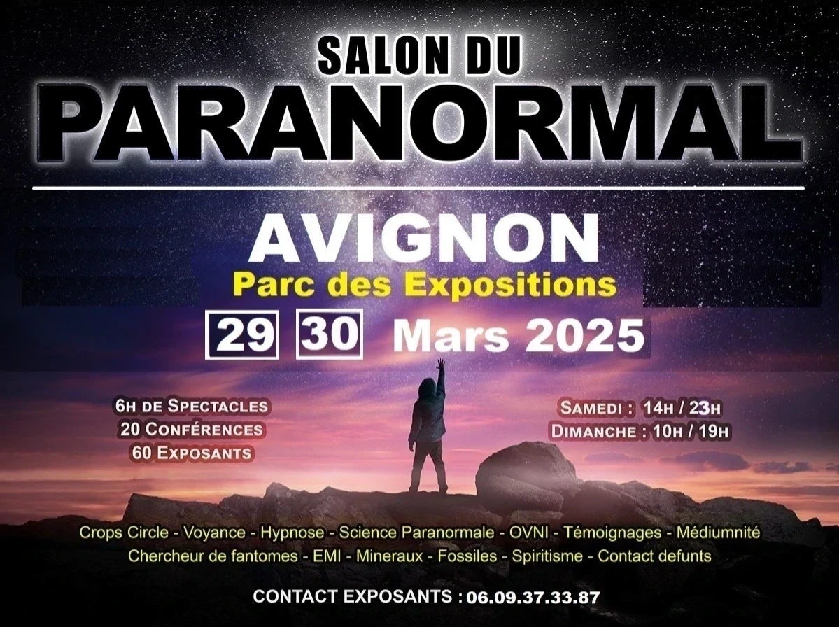 découverte du Tarot et bien d'autres surprises encore... Au Salon du Paranormal, vous serez immergés dans des récits captivants qui susciteront des questions sur l'existence d'un monde au-delà de notre perception habituelle. Découvrez également les dernières avancées et perspectives dans ces domaines énigmatiques. Préparez-vous à une expérience hors du commun où les frontières de la réalité se brouillent et où l'inexpliqué prend vie !